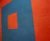 blue- orange complementary contrast, atrium orange square appears brighter when surrounded by its complimentary blue